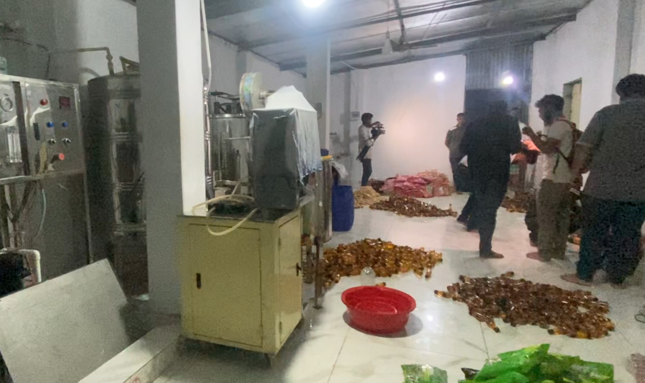 স্থানীয়দের অভিযোগের ভিত্তিতে রোববার সরজমিনে গিয়ে দেখা যায় অনুমোদন ছাড়াই চলছে এমন বিষাক্ত ক্যামিকেলে প্রস্তুতকৃত শিশু খাদ্যসহ আরও নানা পণ্য| ভূয়া বিএসটিআইয়ের লগো ও দেশের নামিদামি পণ্যের মোড়োকে অ¯^াস্থ্যকর পরিবেশে চলছে উৎপাদন|