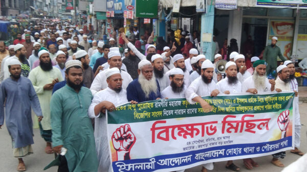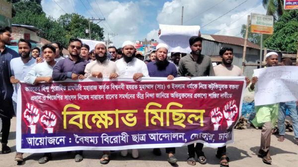 দোহার (ঢাকা) প্রতিনিধি: ঢাকার দোহার উপজেলায় ভারতের হিন্দু পুরোহিত রামগীরি মহারাজ কর্তৃক বিশ্বনবী হযরত মুহাম্মাদ (সাঃ) ও ইসলাম ধর্মকে নিয়ে কটূক্তিমূলক বক্তব্য প্রদান ও বিজেপির সাংসদ নিতেষ নারায়ন রানে’র সমর্থনের