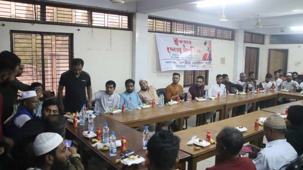 দেওয়ান আবুল বাশার, মানিকগঞ্জ: মানিকগঞ্জে জাতীয় নাগরিক পার্টির (NCP) উদ্যোগে ইফতার ও দোয়া মাহফিল অনুষ্ঠিত হয়েছে। বৃহস্পতিবার বিকেলে মানিকগঞ্জ ১নং আইনজীবী ভবনে সদর উপজেলা শাখার আয়োজনে এই ইফতার মাহফিল অনুষ্ঠিত